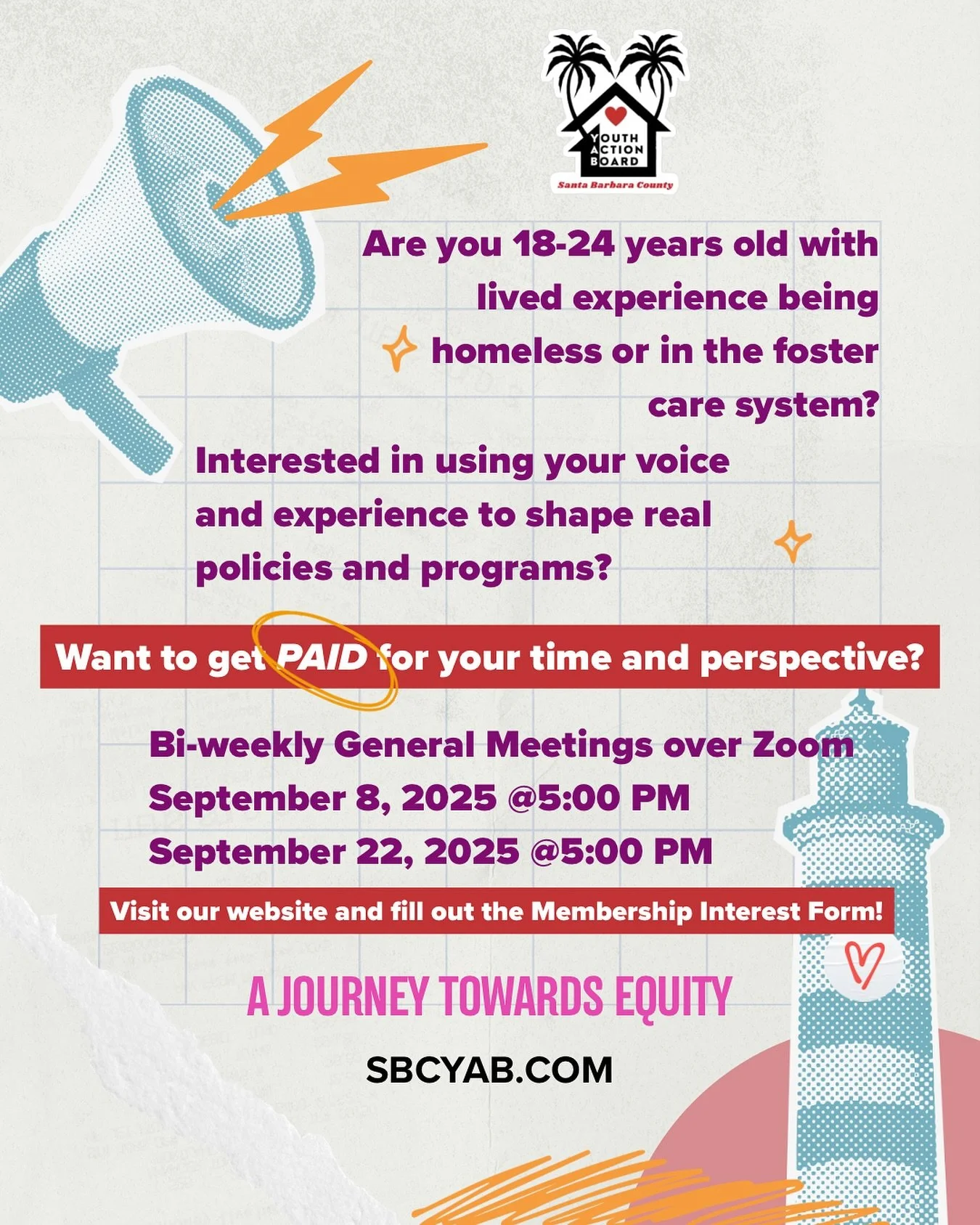Hey rockstars! 🌟 We're the Youth Action Board working with Santa Barbara County Continuum of Care to bring young adult perspectives to support programs and events. Join us in advocating for the needs of youth! #YouthPower